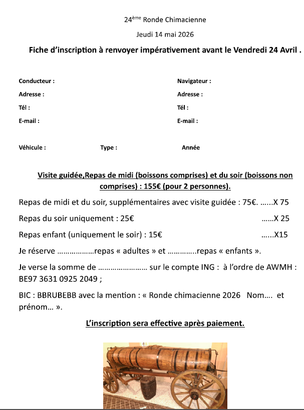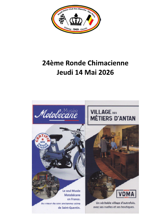 Cette année l’ assemblée générale de l’ASBL Royal Motor Club Eau Blanche Eau Noire et de l’ association Willy Mairesse Historique se tiendra conjointement à la salle du collège SAINT-JOSEPH, rue de Virelles 75 à CHIMAY, le samedi 7 Mars 2026 à 20h00. Nous vous attendons nombreux.. Le verre de l’ amitié et quelques sandwiches vous seront offerts.